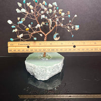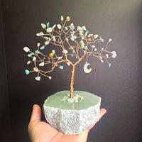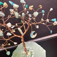 Soft and serene, this Mojo Tree features soothing Amazonite beads twisted into a base of polished Green Aventurine. Chips of Green Aventurine and a crescent moon charm, add extra texture and shimmer, creating a calming piece that feels fresh and harmonious.