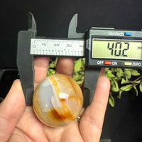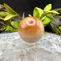 A beautifully banded Carnelian sphere that radiates gentle strength and creative energy, an elegant addition to any crystal collection.