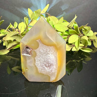 Bring earthy elegance and grounding energy to your space with these captivating Agate free forms. Each piece showcases unique banding, rich neutral tones, and sparkling druzy inclusions that highlight the natural beauty of Agate. Their polished geometric shapes contrast beautifully with raw, textured interiors, perfect as statement pieces, meditation companions, or thoughtful gifts.