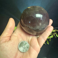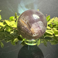 This deep-toned Fluorite sphere features rich shades of plum and smoky violet that shift subtly under light, revealing natural layers within the stone. Polished to a glossy sheen, it exudes quiet strength and sophistication. Each viewing angle reveals new color depths, making it an endlessly fascinating piece to admire.