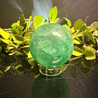 This luminous Green Fluorite sphere glows with rich, soothing green tones and natural internal patterns that give it depth and texture. Its gentle radiance and smooth surface make it a truly captivating piece.