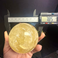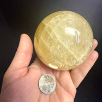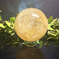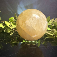 This beautiful Honey Calcite sphere features warm golden, buttery yellow, and soft amber tones with natural internal textures that catch and reflect the light. This polished sphere has a lovely glow and visual depth, making it an eye-catching display piece from every angle.