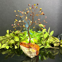 Earthy, bold, and full of natural character, this handmade Mookaite Jasper Mojo Tree is a striking statement piece. Each branch is carefully twisted by hand and adorned with Mookaite Jasper beads, rising from a rough Mookaite Jasper base that highlights the stone’s natural texture and rich color variations. Small Red Jasper chips surround the base, adding extra texture and rich, warm tones. No two trees are ever alike, making this one a truly unique creation.