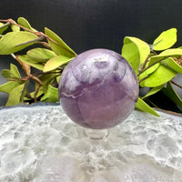 Rich and elegant, this Purple Fluorite sphere displays deep violet tones that glow with soft inner light. Its smooth polish enhances the natural variations within the stone, creating a timeless and tranquil presence.