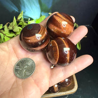 These Red Tiger’s Eye spheres glow with deep reddish-brown tones and shimmering chatoyancy that dances across the surface when moved in the light. Each sphere is polished smooth, showcasing the stone’s natural luster and unique variations.