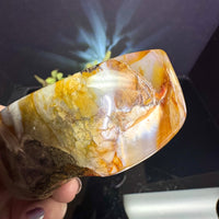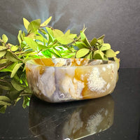 This stunning Violet Agate bowl is a natural blend of beauty and function. With flowing bands of purple, lavender, and soft neutrals, each bowl is a one-of-a-kind expression of the Earth’s artistry. Smoothly polished and carved into a shallow dish, it’s perfect for holding jewelry, crystals, or intention-setting items.