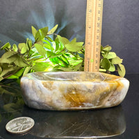 This stunning Violet Agate bowl is a natural blend of beauty and function. With flowing bands of purple, lavender, and soft neutrals, each bowl is a one-of-a-kind expression of the Earth’s artistry. Smoothly polished and carved into a shallow dish, it’s perfect for holding jewelry, crystals, or intention-setting items.